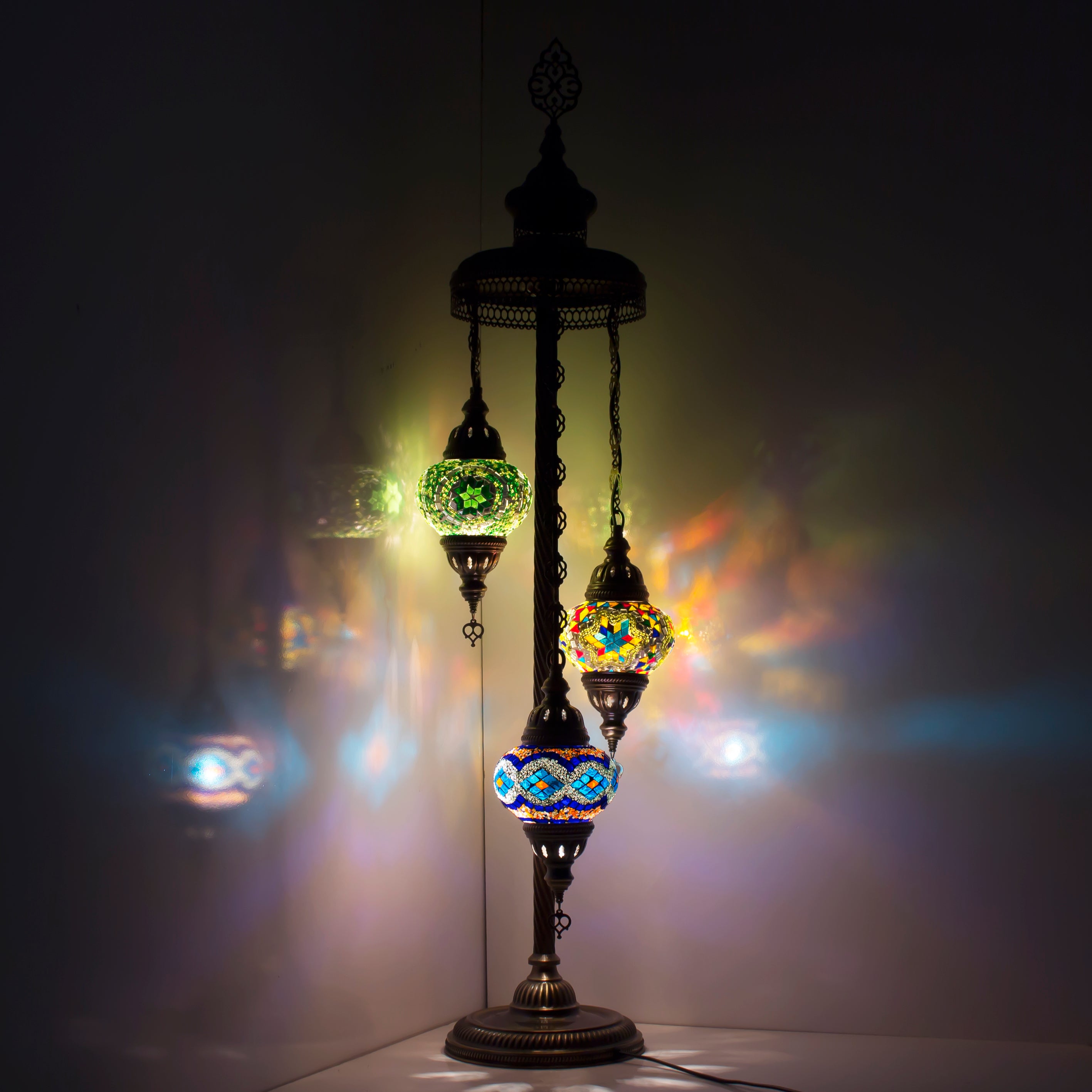 Turkish Moroccan Floor Lamp Mosaic Stunning 3 Globes